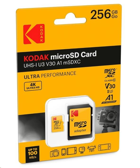 Kodak paměťová micro SD karta 256GB UHS-I U3 V30 Ultra + adaptér