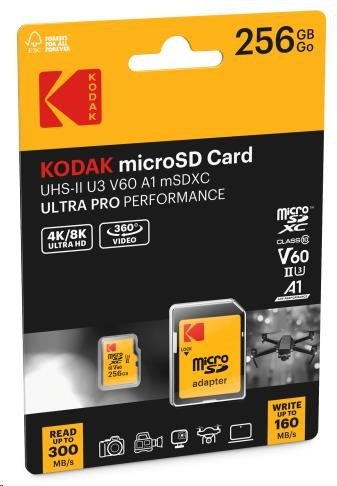 Kodak paměťová micro SD karta 256GB UHS-II U3 V60 Pro +adapt