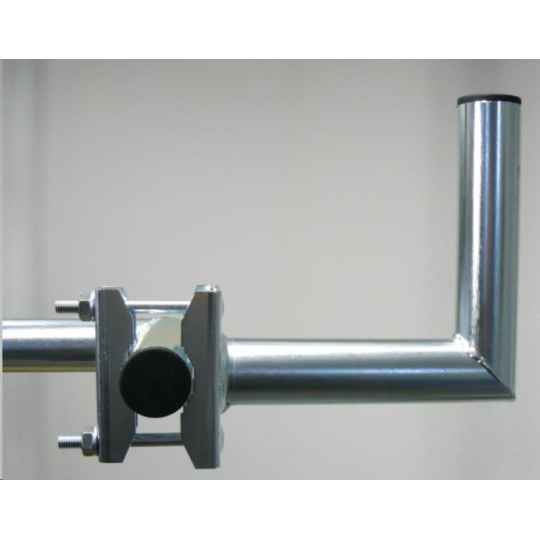 Držák vhodný k připevnění na balkónové zábradlí nebo vodorovnou trubku, pro uchycení satelitních parabol a větších antén.| Technické specifikace: | |