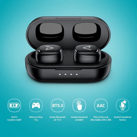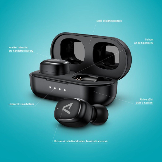 Žádný složitý návody, ale jednoduchý ovládání, který ti půjde od ruky. Stačí jen vyndat sluchátka z krabičky, dát do ucha a pak to půjde samo.