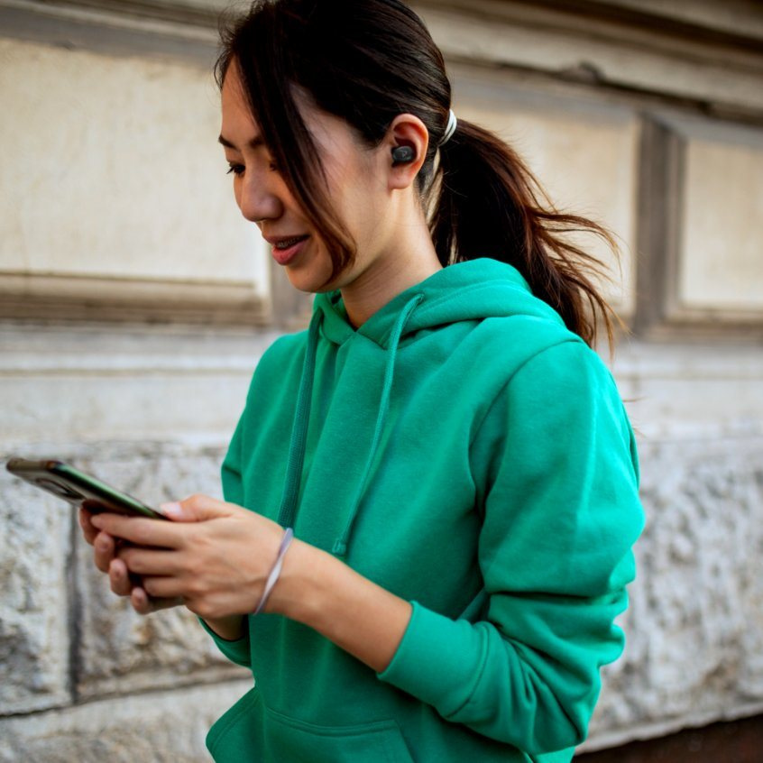 Ať už voláš, mluvíš s hlasovým asistentem nebo posíláš hlasový zprávy, vždycky ti zůstanou volný ruce. A klidně můžeš používat jen jedno sluchátko.