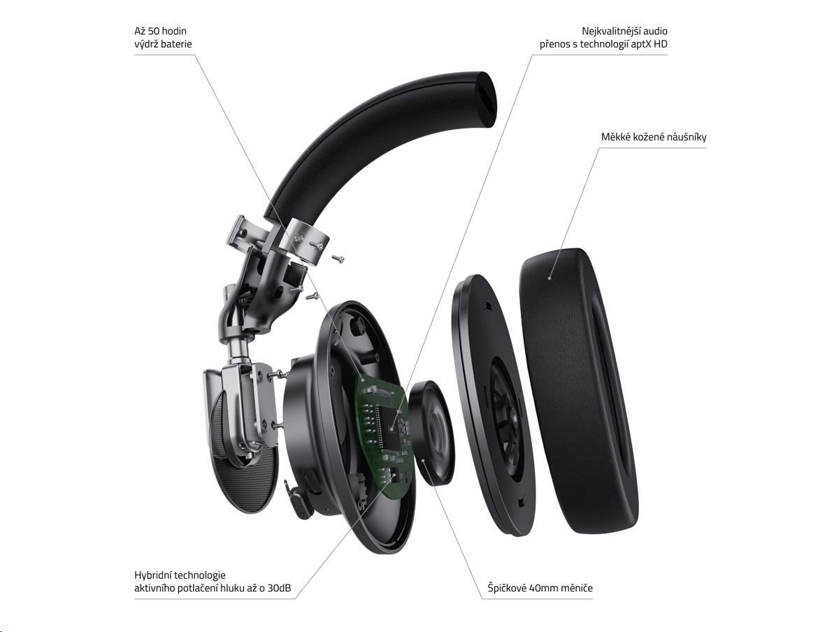 Na první pohled tě zaujmou jedinečným titanovým designem, na první dotek se ti zalíbí luxusním zpracováním a na první poslech tě přesvědčí, že sis vybral správně. Sluchátka vydrží na jedno nabití až 50 hodin (25 hodin se zapnutým ANC), takže jsou ready na týden v officu i let kolem zeměkoule. Pokud potřebuješ volný ruce, při hovorech ti pomůže zabudovaný mikrofon. A kdyby ses chtěl vrátit ke starý dobrý klasice, klidně do nich můžeš i zapojit 3,5 mm jacka.
