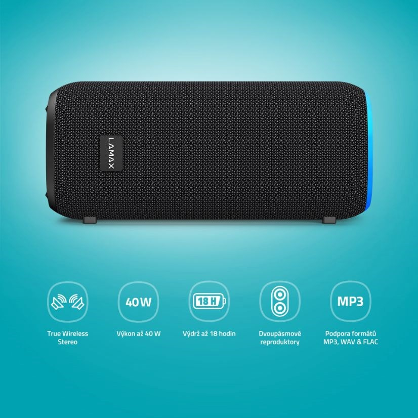 Jakmile vyndáš LAMAX StarCube1 z báglu, je jasný, že na scénu vstoupila hvězda mejdanů. Není žádný obr, spíš moderní elegán, co má styl. Jeho horizontální mobilní design zaujme na první dobrou, a když rozehraje svoje 4 nastavitelný LED efekty a rozbalí to na plnej výkon až 40 W, je to jízda. A bude dlouhá, baterie vydrží až 18 hodin. Jakmile šťáva dochází, připoj USB-C kabel. Když se budeš chtít fakt rozšoupnout, připoj pomocí TWS funkce další reprák stejného typu a uslyšíš ten hukot. Dvoupásmový reproduktory burácejí čistým, vyváženým zvukem, kde vyniknou bohatý basy a jasný výšky. S nejrůznějšími zařízeními se reprák spáruje automaticky po zapnutí Bluetooth 5.3 a stejně snadný je i jeho ovládání. Široká variabilita připojení, včetně microSD, a podporovaných formátů je už samozřejmostí.