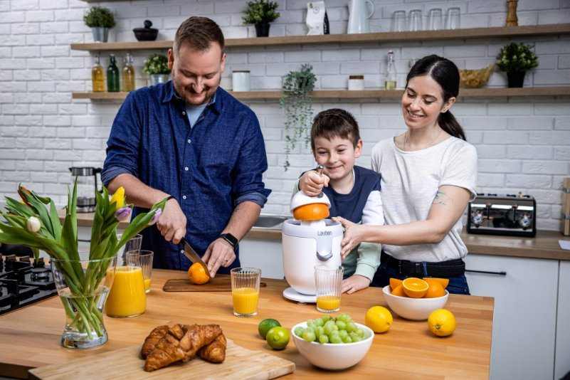 Elektrický citrusovač Lauben Electric Citrus Juicer 110WT pracuje rychlostí 75 otáček za minutu. Při této rychlosti zůstává ve šťávě zachováno maximální možné množství vitamínů. Pokud by totiž bylo odšťavňování příliš rychlé a hrubé, došlo by k jejich zničení. Díky tvaru kužele a kalibraci páky je přesto proces efektivnější, a tím i rychlejší než u podobných citrusovačů na trhu. Filtr a výlevka jsou navíc vyrobeny z nerezu, takže nedochází ke kontaminaci šťávy. Její chuť i aroma zůstávají zachovány, což v případě plastových komponentů nebývá zvykem.