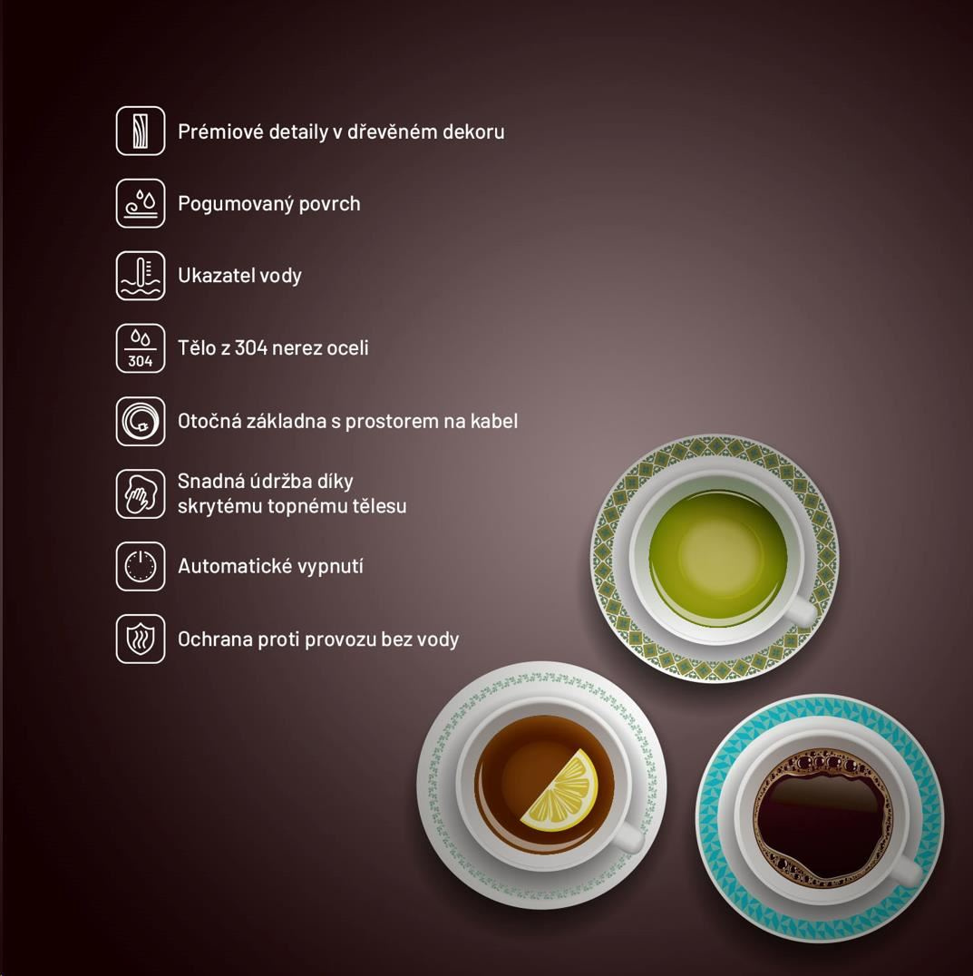 Konvice je vybavena pojistkou proti přehřátí i vaření bez vody.