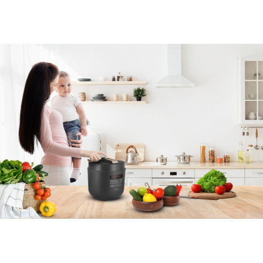 Přístroj disponuje 9 přednastavenými programy - rýže, hrubé obiloviny, porridge, vepřové, kuře, luštěniny/šlachovitá masa, rychlá omáčka, polévka, ohřev. Pouze veškeré suroviny vložíte do tlakového hrnce, uzavřete a navolíte příslušný program. Obdobně máte možnost vybrat si ze 3 úrovní struktury masa, tuhá až měkká. Čas vaření lze upravit i manuálně. Díky funkci Keep Warm udržíte jídlo teplé i pro opozdilce. Funkce odloženého startu zase pomůže, abyste po příchodu domů měli již jídlo hotové.