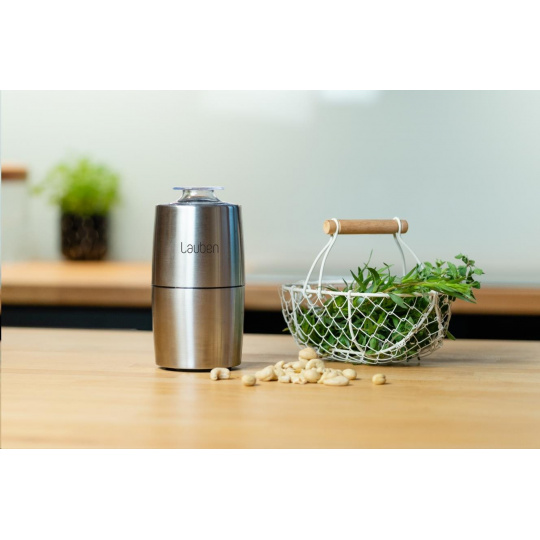 Srdcem mlýnku Lauben je tříštivý nůž z kvalitní nerezové oceli #304, který se postará o rovnoměrné namletí surovin. Ze stejného typu nerezové oceli je vyrobeno tělo mlýnku i mlecí nádoba. Kvalitní materiály a zpracování zajišťují delší životnost mlýnku, ale i uchování jedinečného aroma po celou dobu přípravy. Třešničkou na dortu je minimalistické a elegantní provedení mlýnku, které se bude ve vaší kuchyni vyjímat.