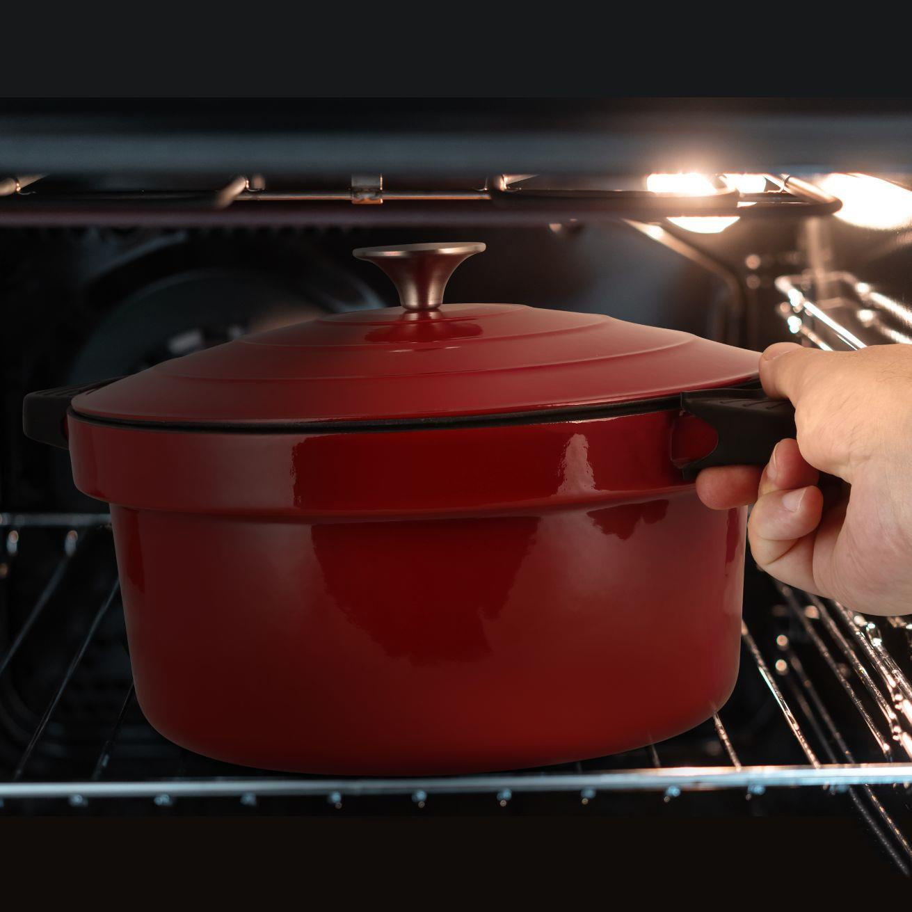 Součástí elektrického multicookeru je OvenSafe® litinový smaltovaný vnitřní hrnec, který odolává teplotám až 250°C a hodí se i pro použití v troubě či na různých typech sporáků. Litina oplývá schopností absorbovat teplo a předávat ho surovinám uvnitř, které se tak připravují při konstantní teplotě. Dochází k úspoře energie a tím i peněz. Šťavnatost a křupavost jídlům zajišťuje speciální poklice, která je navržena tak, aby docházelo k rovnoměrné distribuci vlhkosti uvnitř hrnce.