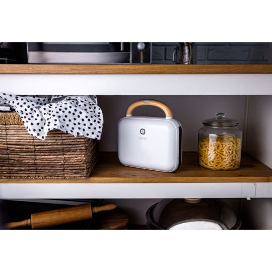 Křupavá snídaně, svačina i rychlá večeřeNemáte zrovna čas na přípravu teplé večeře nebo vydatné snídaně? S toastovačem Lauben zvládnete obojí během pár minut. Klasickými toasty se šunkou a sýrem potěšíte každé dítě, rozhodně u nich ale nemusíte skončit. Sendvičovač Lauben si díky 3 sadám plotýnek poradí i se snídaňovou vaflí nebo grilováním masa. Nahřejete ho během chvilky a jídlo budete mít hotové dříve, než se vám podaří svolat všechny ke stolu. Potěší vás i snadná údržba a skladování. Sendvičovač vertikálně uložíte do kuchyňské skříňky a vyměnitelné plotýnky lze jednoduše otřít hladkou stranou houbičky na nádobí. Díky integrovaným protiskluzovým nožkám zůstane během přípravy jídla na místě. Mysleli jsme i na bezpečný provoz. Cool Touch držadlo zajistí, že se nikdy nespálíte a provoz indikuje LED kontrolka na povrchu přístroje. Přidanou hodnotou je prémiový design značky Lauben. Trendy off white provedení s dřevěným dekorem se totiž skvěle hodí do každé kuchyně.