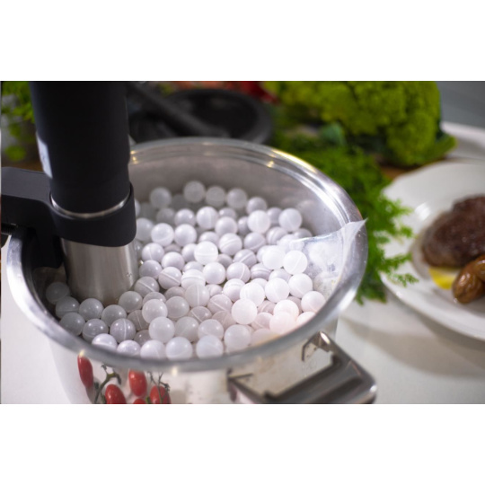 Lauben Sous Vide Balls jsou užitečným pomocníkem při vaření sous vide. Díky jejich použití nebudete muset doplňovat vodu do vodní lázně ani při několikahodinové přípravě. Pokud necháte sous vide vařič běžet přes noc, nemusíte se bát půlnočních alarmů kvůli vypařené vodě. Balónky nahrazují pokličku, jednoduše je vysypte na vodní hladinu v nádobě. Kromě toho, že zabraňují vypařování vody, pomáhají také lépe udržovat teplotu a zabraňují tepelným ztrátám.