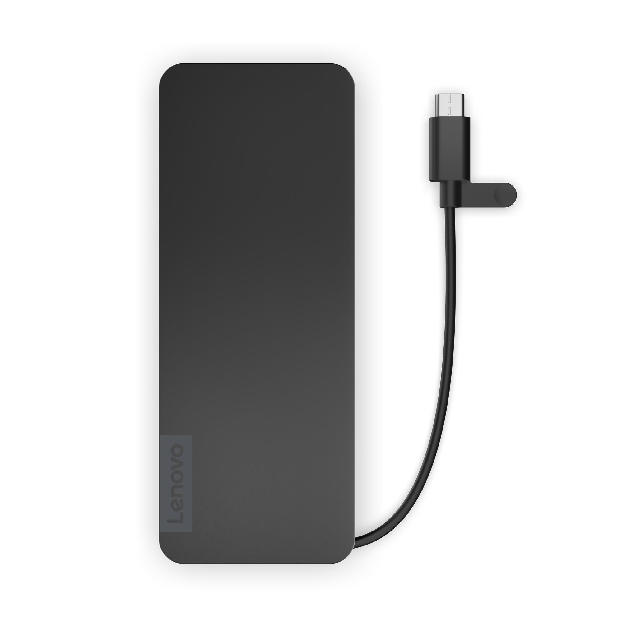 Cestovní dokovací stanice Lenovo Slim USB-C zvyšuje produktivitu uživatele tím, že poskytuje rozšíření portů, podporu displeje s vysokým rozlišením a optimální napájení kdekoli doma, v práci a kdekoli mezi tím.
