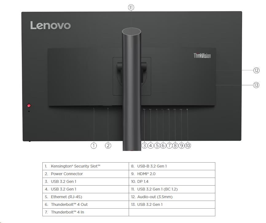 LENOVO LCD P32p-30 - 31,5”,IPS,matný,16:9,3840x2160,178/178,4ms/6ms,250cd/m2,1000:1,HDMI,DP,USBC,RJ45,USBHub,Pivot,VESA