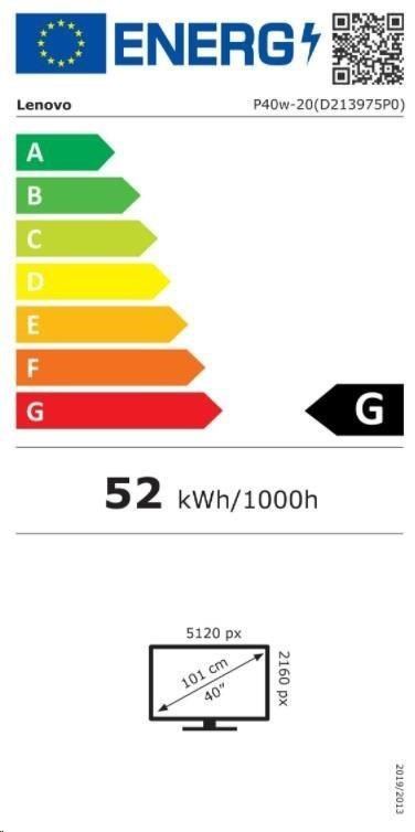 LENOVO LCD P40w-20 - 39.7",IPS,mat,prohnutý,21:9,5120x2160,178/178,4ms,300cd/m2,1000:1,DP,HDMI,RJ45,TB4,USB,VESA,Pivot