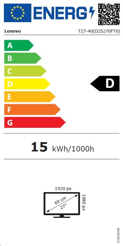 LENOVO LCD T27-40 - 27",IPS,matný,16:9,1920x1080,120Hz,4ms,300cd/m2,1500:1,HDMI,DP,VGA,USBHub,USB-C,PD15W,VESA,Pivot