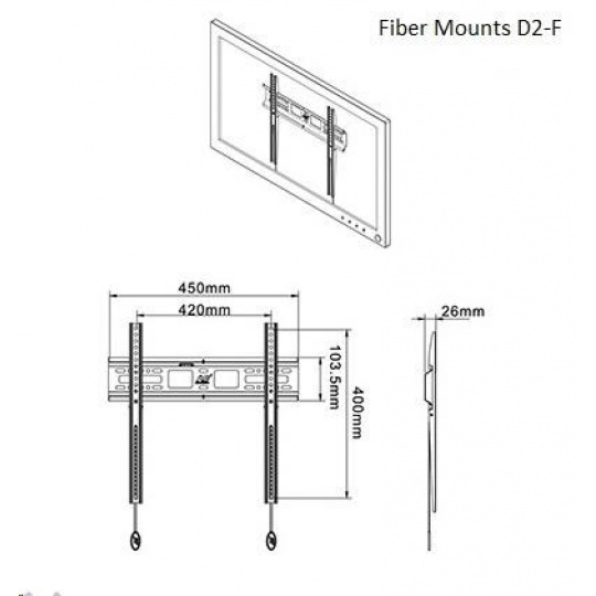SPOLEHLIVÝ NÁSTĚNNÝ FIXNÍ DRŽÁK PRO ZAVĚŠENÍ TV 26-55", NOSNOST 18KG Televizní držák velmi dobré kvality za skvělou cenu. Pevný držák na všechny typy televizorů, které mají úhlopříčku 26" až 55" a jejichž hmotnost není vyšší než 18kg. Tento držák podporuje VESA standardy 75x75 až 400x400. Po zavěšení televizoru na držák bude vzdálenost Tv od zdi pouhých 26mm. Zajištění televizoru proti náhodnému vysazení je automatickými západkami, které snadno uvolníte pomocí táhel - ta jsou uschována za televizorem. Držák je dodáván včetně montážního materiálu. Levný držák na televizi Fiber Mounts D2-F Technické údaje: maximální zatížení držáku 18kg VESA standardy 75x75 až 400x400 doporučená úhlopříčka televize 26" - 55" vzdálenost televizoru od zdi je 26mm integrovaná vodováha pro snadnou montáž velmi rychlé a bezpečné upnutí televize na držák, stejně snadné uvolnění pomocí 2 táhel kvalitní a pevná konstrukce dodáváme včetně montážního materiálu barva černá záruka 5 let Držák podporuje VESA standardy pro zavěšení televizorů: VESA 75x75 VESA 100x100 VESA 200x100 a 100x200 VESA 200x200 VESA 300x200 a 200x300 VESA 300x300 VESA 400x200 a 200x400 VESA 400x300 a 300x400 VESA 400x400 Na fixní držák Fiber Mounts D2F je možné zavěsit všehny značky a typy televizorů, které podporují některý z výše uvedených VESA standardů a jejichž hmotnost není vyšší jak 18kg. Velikost úhlopříčky není podstatná, uvedené rozmezí je pouze informativní..