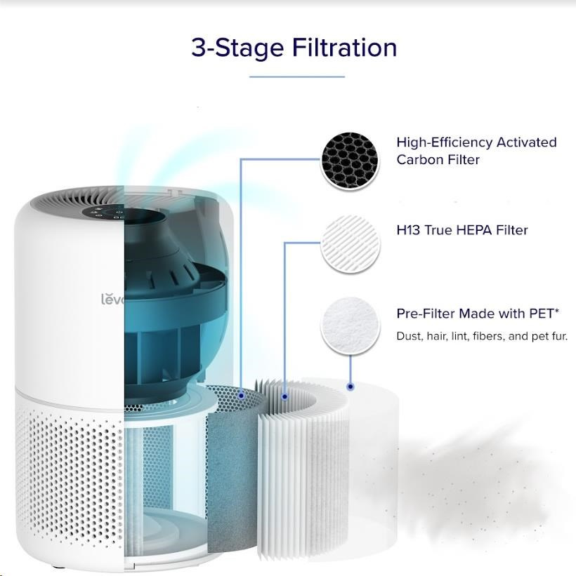 Vysoce kvalitní tří stupňový systém filtrace a HEPA pro Levoit Core Mini