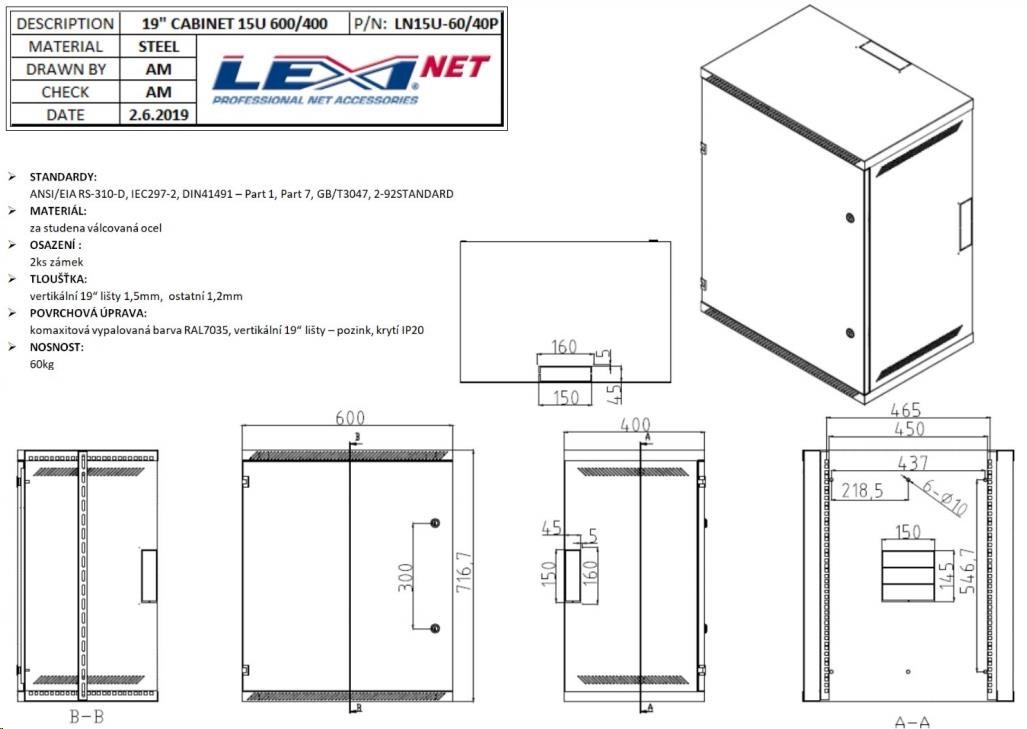 LEXI-Net 19" nástěnný rozvaděč 15U