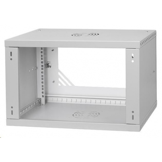 LEXI-Net 19" nástěnný rozvaděč Basic 6U 520x350, skleněné dveře, bez zad, rozložený, šedý