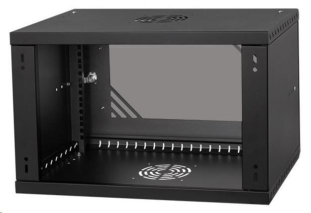 LEXI-Net 19" nástěnný rozvaděč Basic 6U 520x450, skleněné dveře, bez zad, rozložený, černý