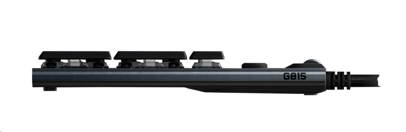 Klávesnice G815 představuje průlom v technologii a designu, s neuvěřitelně decentní, neskutečně tenkou konstrukcí bez kompromisů v oblasti výkonnosti nebo počtu funkcí. Odolná, pohodlná a připravená pro intenzivní herní akce – G815 je skutečně novou generací herních mechanických klávesnicí.