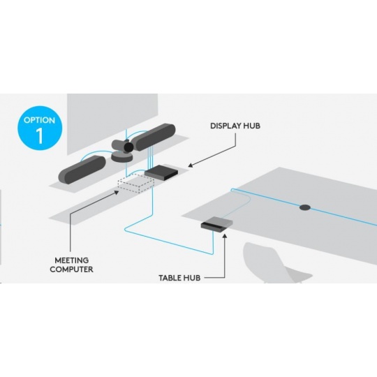 | Kabely/Napájení | Kamera > obrazový rozbočovač Počítač v konferenčním sále > obrazový/stolní rozbočovač Obrazový rozbočovač > stolní rozbočovač Obrazový rozbočovač > reproduktor (x2) Počítač v konferenčním sále > obrazovka (x2) Stolní mikrofon Zásuvka > zdroj napájení (x2) zdroj napájení > obrazový/stolní rozbočovač (x2) |