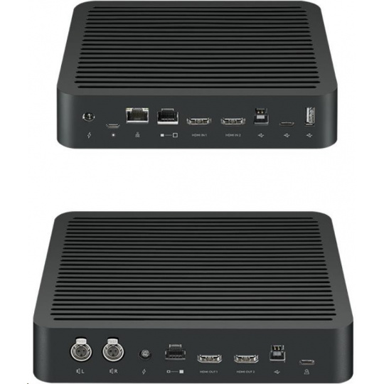 | Obrazový rozbočovač Rally | HDMI typu A (x2) (připojení k obrazovce) USB C (připojení ke kameře Rally) USB typu B (připojení k počítači v jednacím sále) RJ45 (připojení ke stolnímu rozbočovači) MiniXLR (x2) Napájení pro jeden až dva reproduktory Rally Vstup napájení |