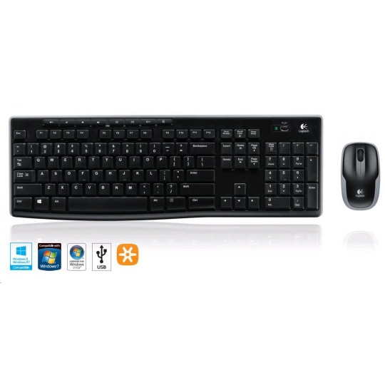 Sada Logitech® Wireless Combo MK270. Spolehlivá bezdrátová sada s miniaturním nanopřijímačem Logitech Unifying®. Systém bezdrátového propojení Logitech Advanced 2,4 GHz představuje kombinaci spolehlivosti kabelového propojení s volností pohybu bezdrátového spojení do vzdálenosti až 10 metrů, prakticky bez