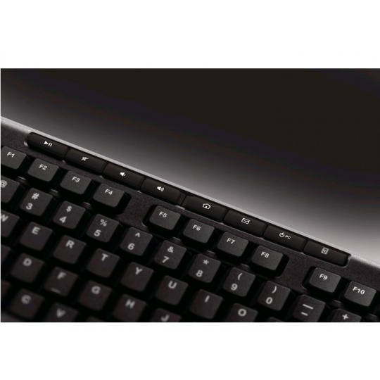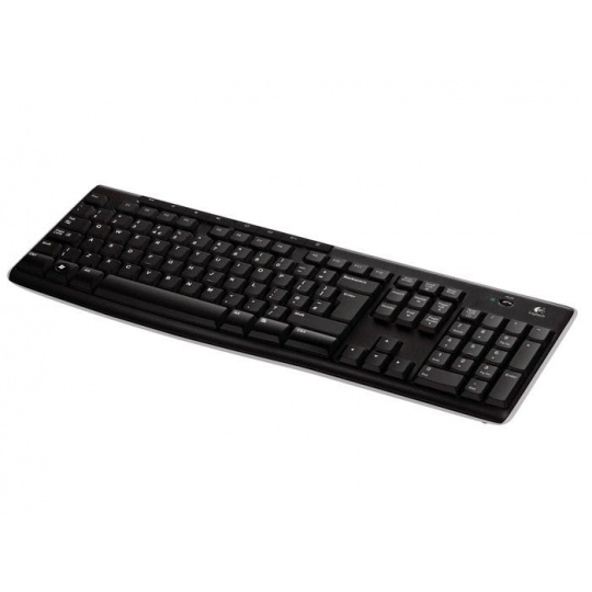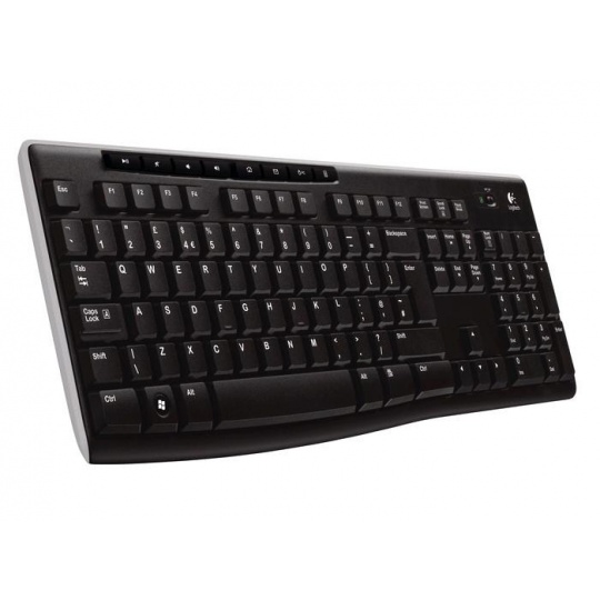 Logitech® Wireless Keyboard K270. Reliable wireless—wherever you use your keyboard. The tiny Logitech Unifying receiver is small enough to stay in your laptop. Plus, you can easily add another compatible mouse or keyboard—without the hassle of multiple USB receivers. With Logitech Advanced 2.4 GHz wireless connectivity, you'll enjoy virtually no signal loss from up to 10 metres (30 feet) away.* You can go for two years without battery hassles.** Eight hot keys and plug-and-play setup that takes just seconds add to the simplicity. The familiar, full-size layout—including number pad—gives you all the right keys right where you'd expect them. And it's built to last with the high quality and reliability Logitech is known for, with a spill-resistant design*** and UV-coated keys for durability.