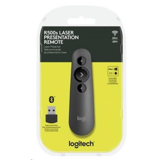 - Deliver impactful presentations with the R500 Laser Presentation Remote. Move freely and navigate slides from up to 20 meters away – and point out precise areas of focus with the red laser pointer. The R500 is optimized to work with Windows®, macOS and leading presentation software.