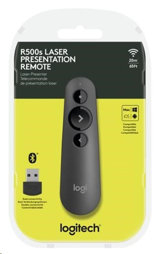 - Deliver impactful presentations with the R500 Laser Presentation Remote. Move freely and navigate slides from up to 20 meters away – and point out precise areas of focus with the red laser pointer. The R500 is optimized to work with Windows®, macOS and leading presentation software.
