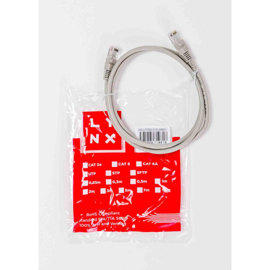 LYNX patch kabel Cat5E, UTP - 0,25m, šedý (prodej po 10 ks)