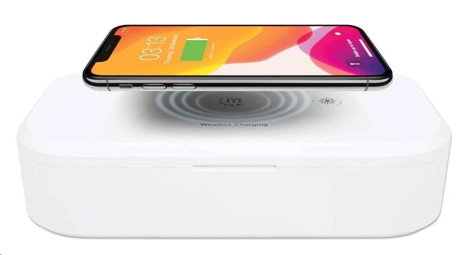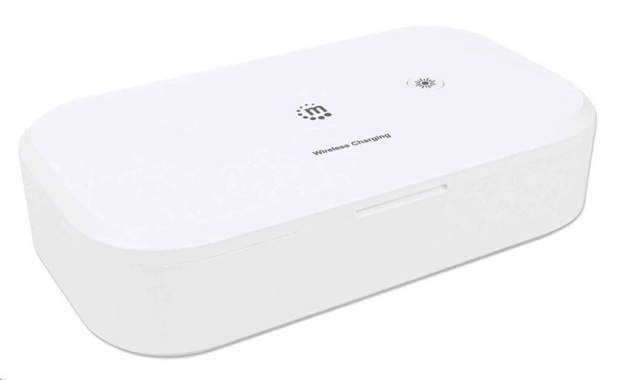 MANHATTAN dezinfekční pouzdro UV-C s bezdrátovým nabíjením, 10W bezdrátová nabíjecí podložka, bílá