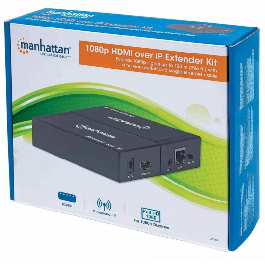 Manhattan HDMI rozdělovač, Extends 1080p Signal up to 120m with a Network Switch and Single Ethernet Cable, černá