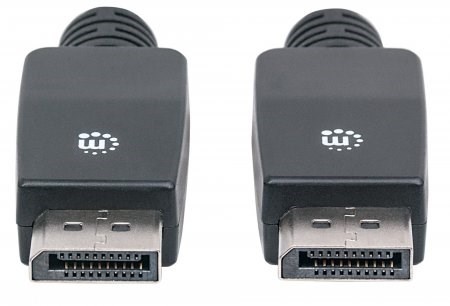 Manhattan DisplayPort Cables deliver both high-definition digital audio and video signals between desktop or notebook computers and an output device. The 20-pin connector is small and compact but offers 10.8 Gbps bandwidth, Deep Color and 24-bit, 8-channel uncompressed audio capability. It's ideal for use with DisplayPort-equipped computers, flat-panel displays, slim-profile devices and many consumer electronics including Blu-ray players and game consoles. Full foil and braided shielding, molded boots with strain relief, protective PVC jackets and gold-plated connections ensure that Manhattan DisplayPort Cables provide maximum conductivity and clear, crisp signal transmissions with reduced EMI interference and distortion.