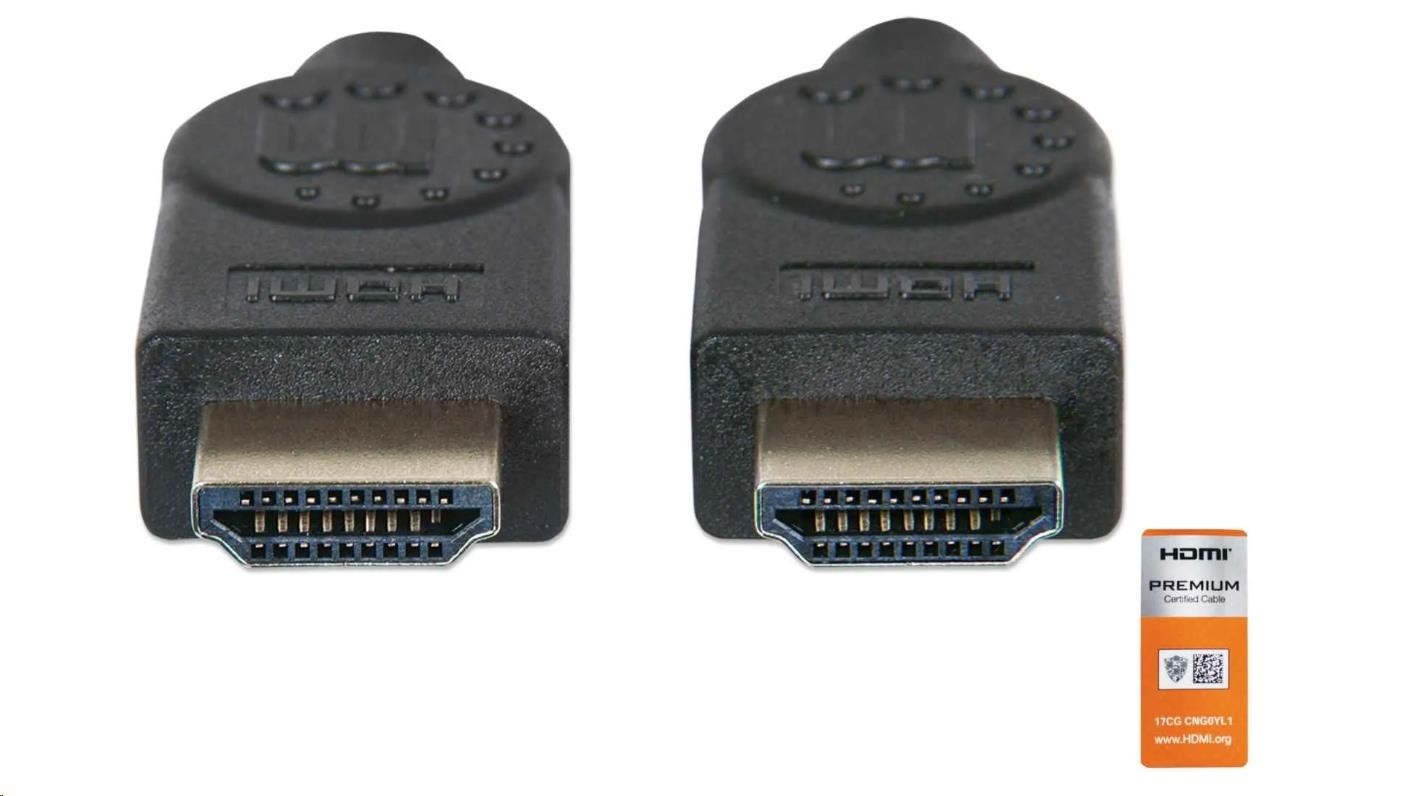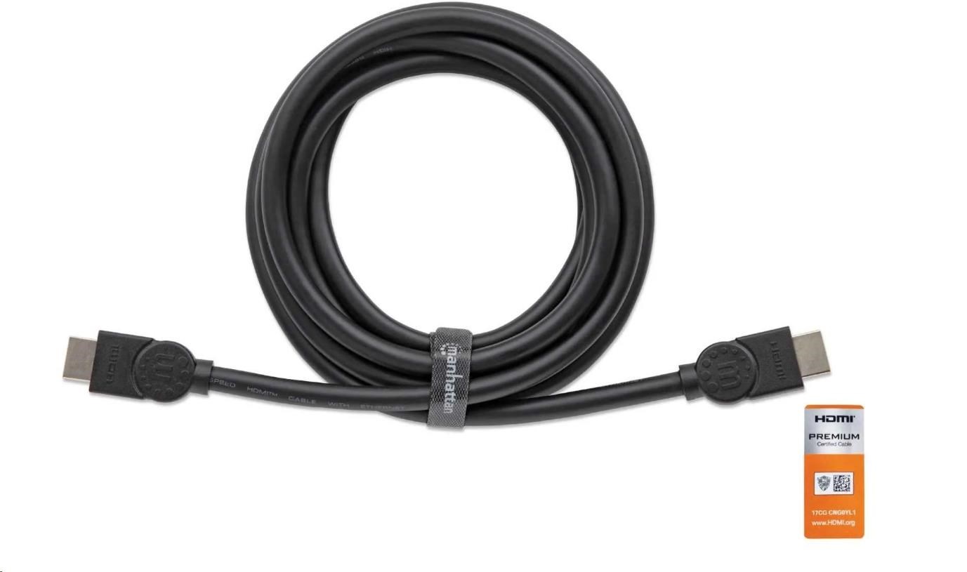 MANHATTAN Kabel HDMI Premium High Speed + Ethernet, 3m, černý