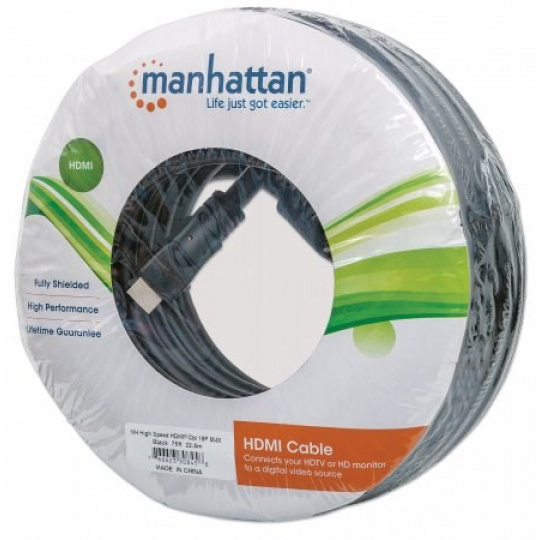 MANHATTAN kabel High Speed HDMI 3D, Male to Male, stíněný, černý, 20m (22.5m)