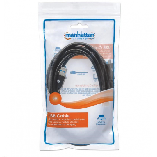 MANHATTAN Kabel SuperSpeed USB-C na USB, 3m, černá