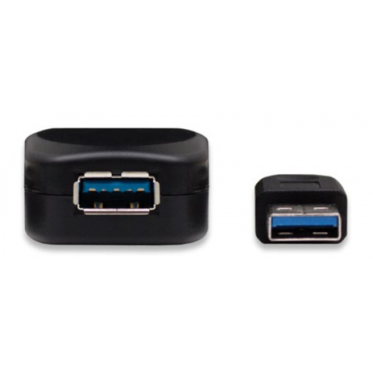 Use the Manhattan SuperSpeed USB Active Extension Cable to connect a computer USB port to a USB device almost anywhere in the room. Extend 5 meters more to the existing connection without signal loss. Manhattan SuperSpeed USB Active Extension Cable with built-in repeater is fully compliant with USB 3.0 and earlier specifications to help devices operate at maximum performance levels. Plug-and-play capability, Windows/7/8.1/10/Macintosh versatility and no external power or driver requirements help provide greater flexibility in computer and peripheral placement and office layout.