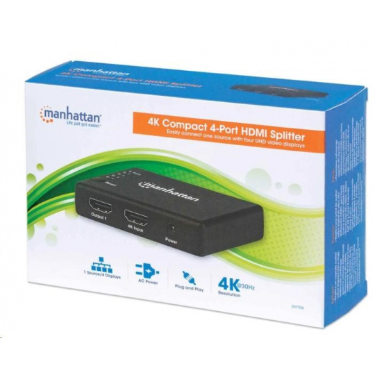 MANHATTAN Splitter HDMI 4 porty, 4K@30Hz, černá