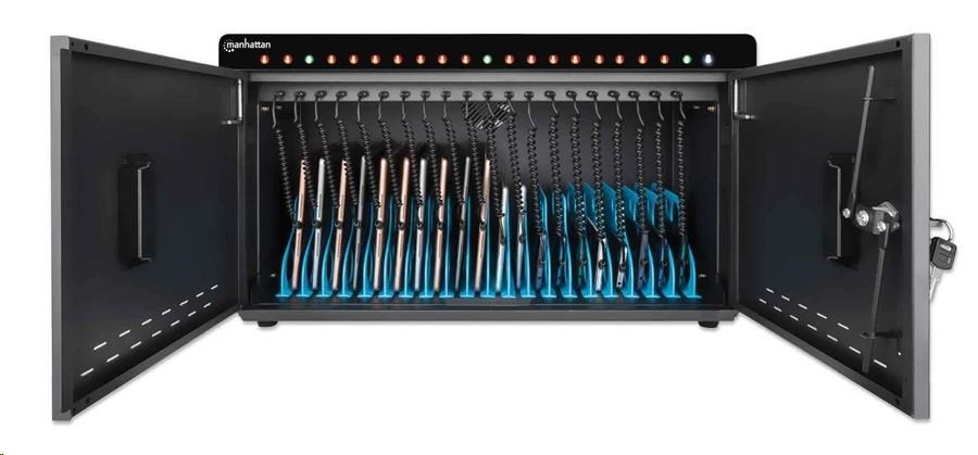 MANHATTAN stolní nabíjecí skříň - 20 portů, 360 W, přepěťová ochrana, tichá ventilace, kovové pouzdro, černá