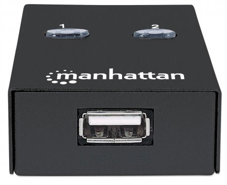 The Manhattan Hi-Speed USB 2.0 Automatic Sharing Switch easily allows two computers to share a USB device. It's ideal for home and office use where users need to share a USB cable modem, printer, digital camera, scanner, external storage drive or other peripheral. Use the convenient access-on-demand switching for activation with a single click of an onscreen button, or use on-board switches to manually select an active computer.