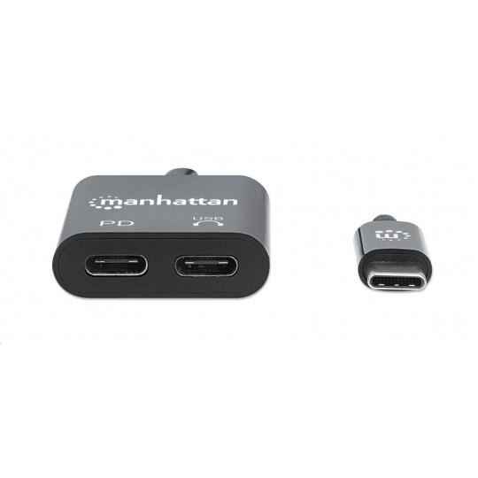 Want to listen to your USB-C headset and charging the device it connects to simultaneously? Add one USB-C audio port and get plenty of power for all your attached devices with the Manhattan USB-C Audio Adapter. Simply connect it to your computer's USB-C port, connect your computer's charging cable to the Power Delivery port on the adapter, and plug in your headphones. The adapter's Power Delivery technology charges your computer and all the devices it connects to so you can listen to music, favorite podcast or media program while you get work done. The jack also supports audio input if your headphone cable has a built-in mic so you can be heard and understood better in your online communications. Improve your productivity and get the audio connection you need with this USB-C audio adapter.