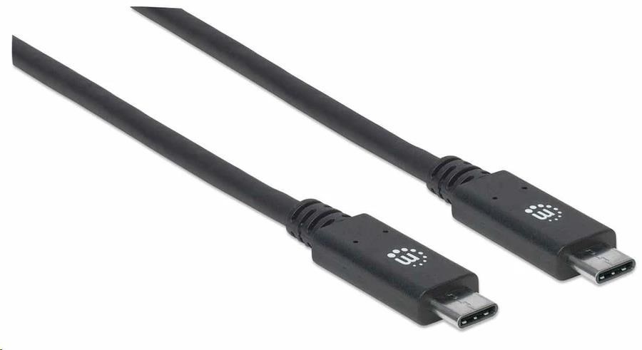 Manhattan USB-C kabel, USB 3.1 Gen 2, USB-C Male na USB-C Male, 10 Gbps, 5 A, 1m, černá