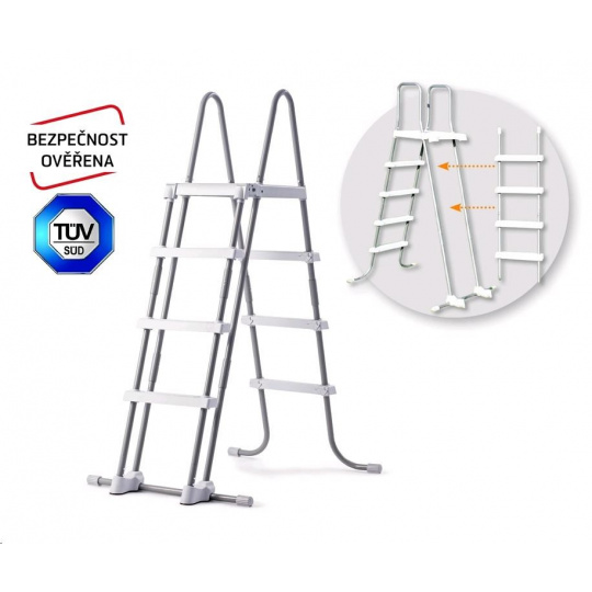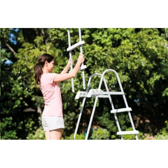 Bezpečnostní schůdky pro bazény do výšky 1,25 m. Schůdky mají odnímatelná stupátka - při jejich odnětí zamezíte nekontrolovatelnému vstupu dětí do bazénu. Maximální nosnost 136 kg. Hmotnost: 12.6 kg.