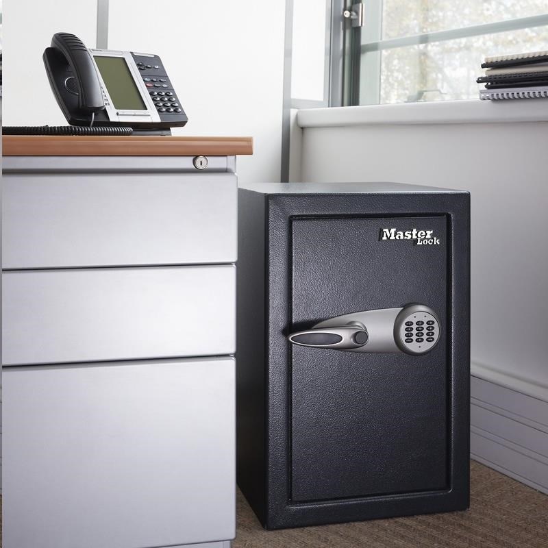 Velký digitální vysoce bezpečnostní trezor Velikost formát L Pevná ocelová konstrukce 4 ocelové šrouby se zámkem a skrytý závěs pro větší ochranu proti útokům Programovatelná digitální kombinace s potlačovacím klíčem Obsahuje 2 klíče 2 nastavitelné police, trezor vypolstrován kobercem Věšák na klíče, organizační systém Bungee Součástí dodávky je i šroubovací šroub Kód produktu: T6-331ML Materiál: Ocel Barva: Černá Rozměr VxŠxH (cm): vnější: 61 x 39 x 41 cm vnitřní: 58,2 x 36,3 x 29,2 cm Objem / celková hmotnost: 61,7 l / 47 kg.