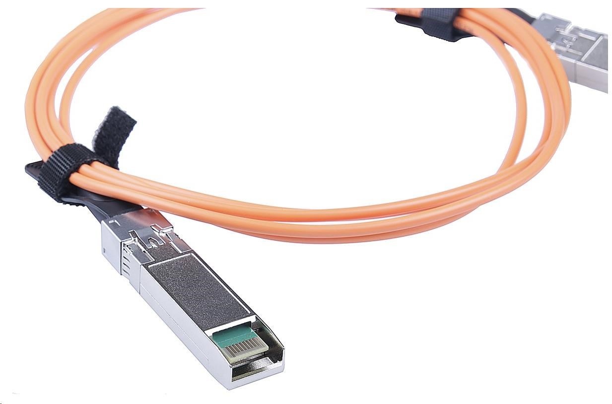 MaxLink 10G SFP+ AOC kabel, aktivní je rychlé a levné řešení pro snadné propojení dvou síťových aktivních prvků switch/router rychlostí 1G nebo 10Gbps bez nutnosti pořízení SFP/SFP+ modulů či jiného příslušenství (například optické patch kabely). Kvalitní optickí aktivní AOC kabel je dodáván s universální Cisco kompatibilitou, která zaručí bezproblémové použití s většinou výrobců aktivních prvků. AOC propojovací kabel se zapojí přímo do SFP/SFP+ slotu na aktivním prvku a ihned tak vytvoření spojení rychlostí až 10Gbps. Propoj pomocí AOC se v aktivním prvku jeví i chová jako spojení klasickými SFP/SFP+ moduly. Délka 10m, aktivní provedení..