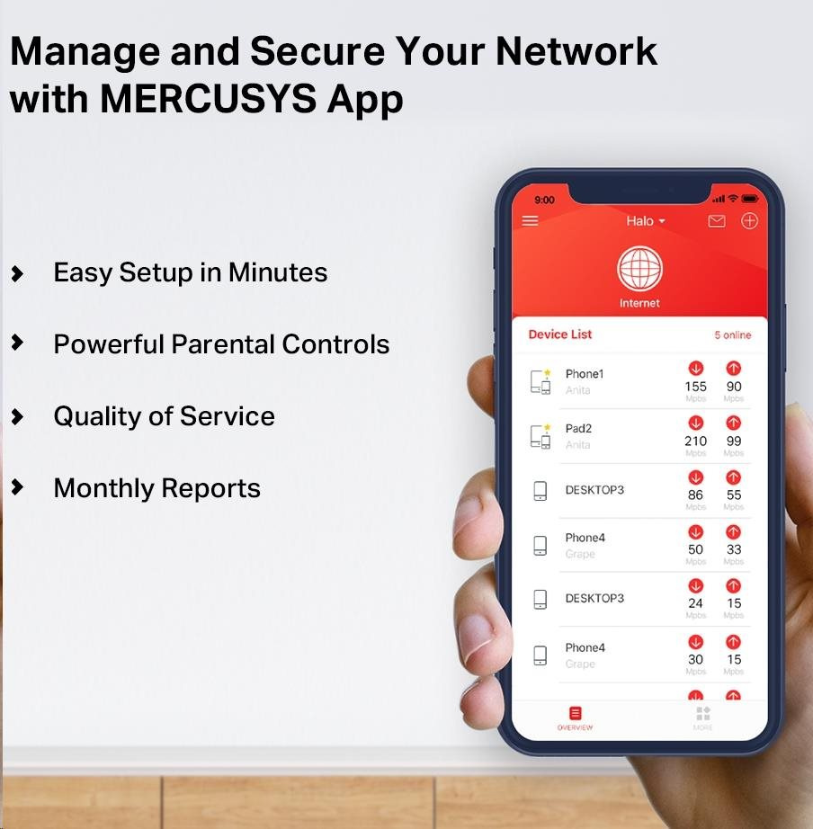 - Snadné ovládání pomocí aplikace – s aplikací MERCUSYS můžete rychle nastavit a spravovat Wi-Fi.