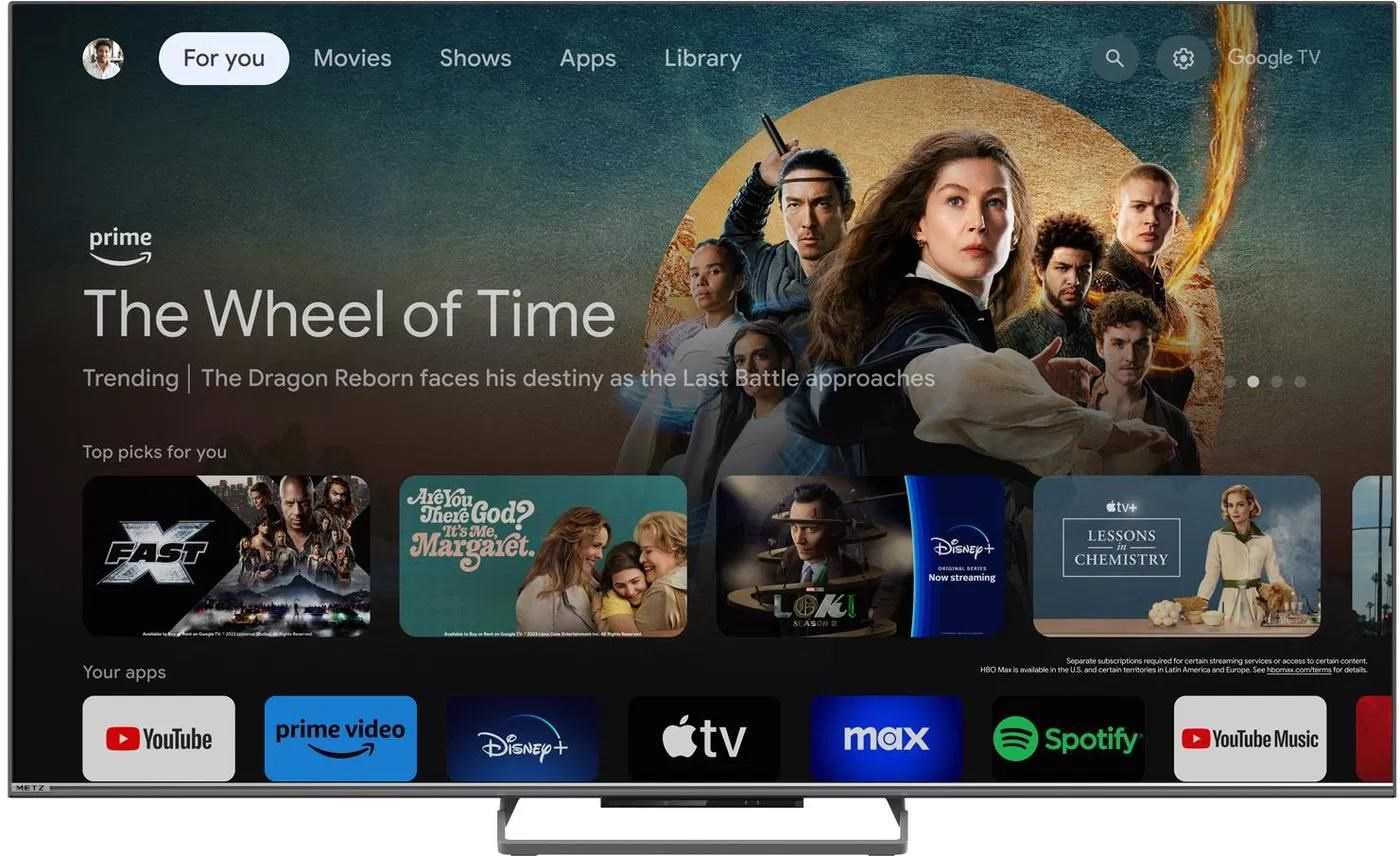 Metz 65MQE8000Z 65" TV, 4K Ultra HD, QLED, Bluetooth, Dolby Atmos, HDR, Google TV, AMD FreeSync Premium