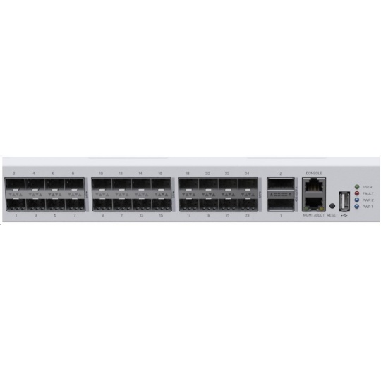 Switch má celkově 2x QSFP+ porty a 24x SFP+ portů, což poskytuje celkovou propustnost 320 Gbps a přepínací kapacitu 640 Gbps s rychlostí přeposílání 252 Mpps u většiny běžných paketů.