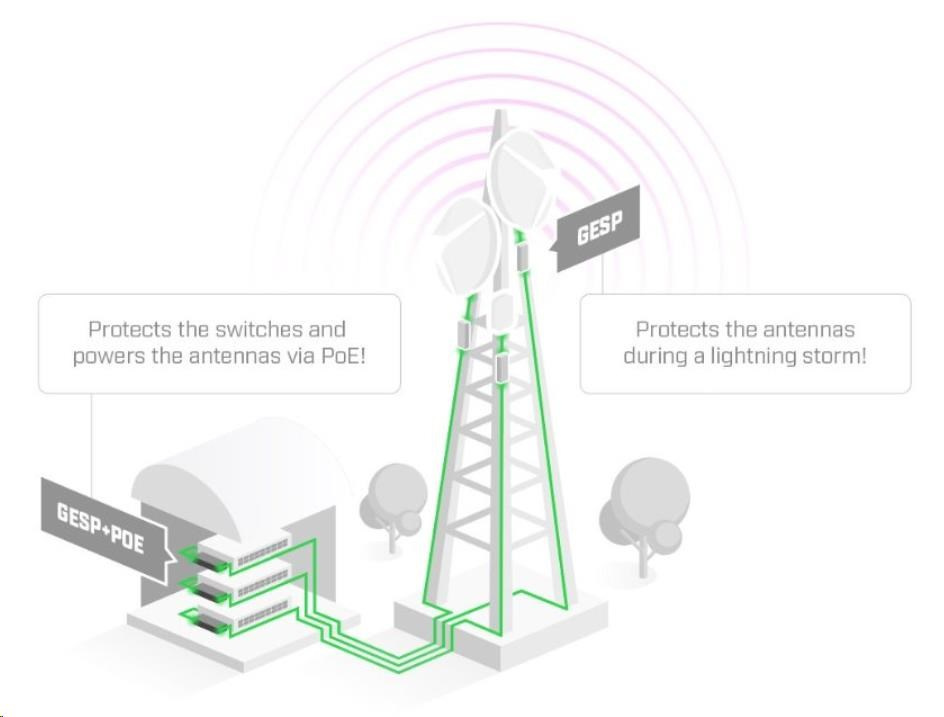 GESP+POE-IN je pasivní Gigabitový PoE injektor s integrovanou přepěťovou ochranou ethernetu pro ochranu proti přepětí s jedním ethernetovým portem z druhé strany vyvedeným kabelem s RJ45 konektorem a zemnícím kabelem zakončeným očkem. Tato verze je určena pro vnitřní použití na port u switche či routeru, který směruje k venkovní CPE jednotce.